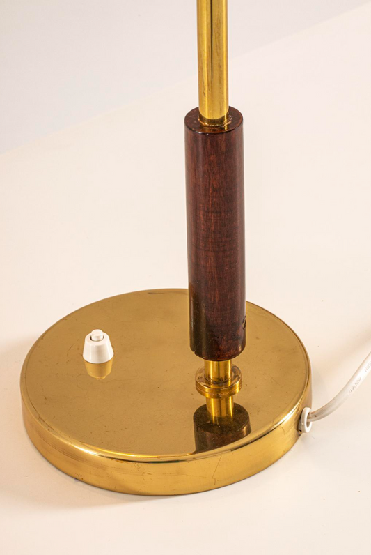 Brass & Teak Table Lamp by Paavo Tynell, 1949