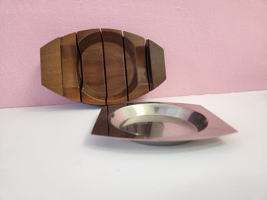 Arthur Salm Walnut Ashtray or Coaster Set: “The Encore” 1968