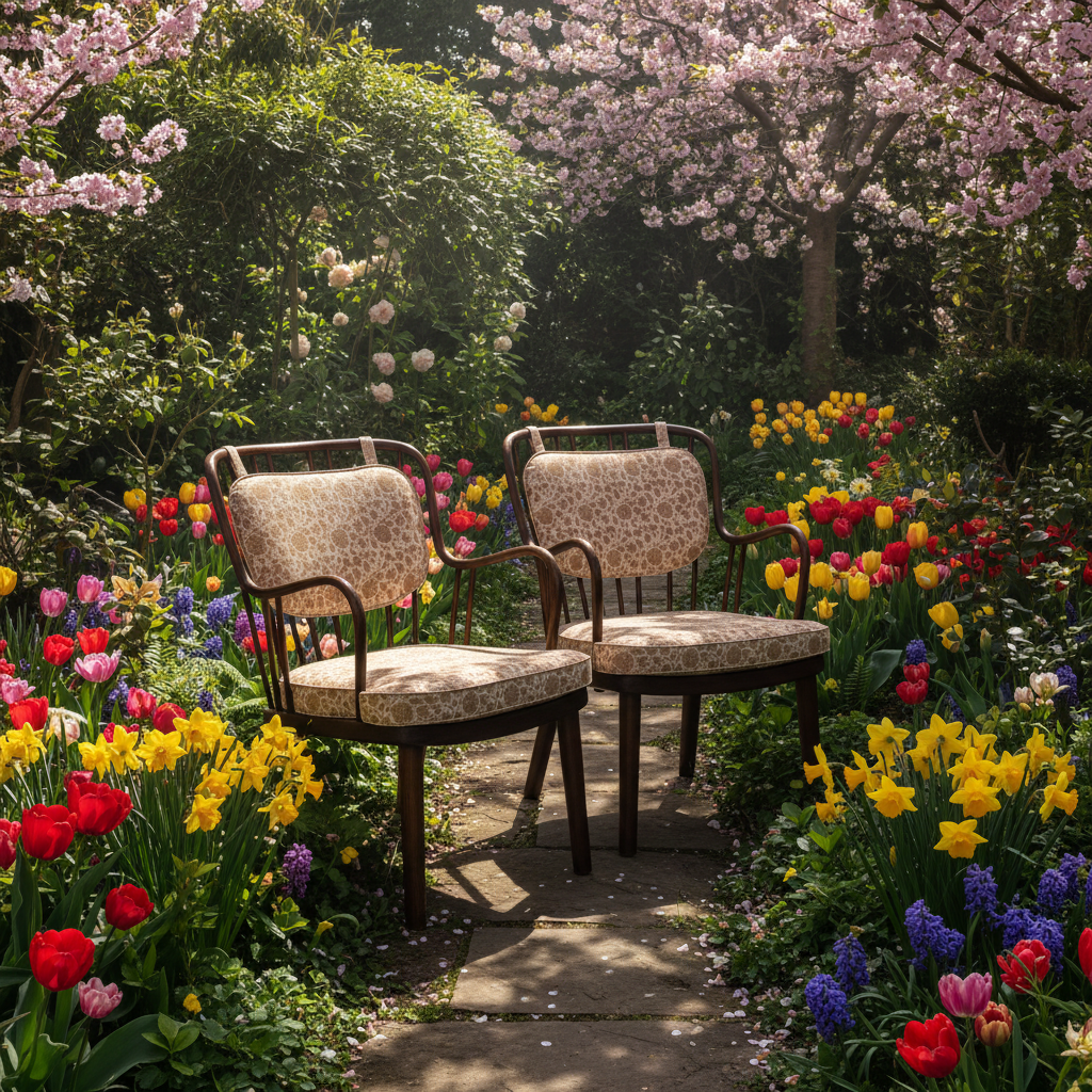 New seat & back cushions - can easily be changed to the fabric of your choice. New cushions as shown: Peter Fasano "Baswa" Linen Print.
